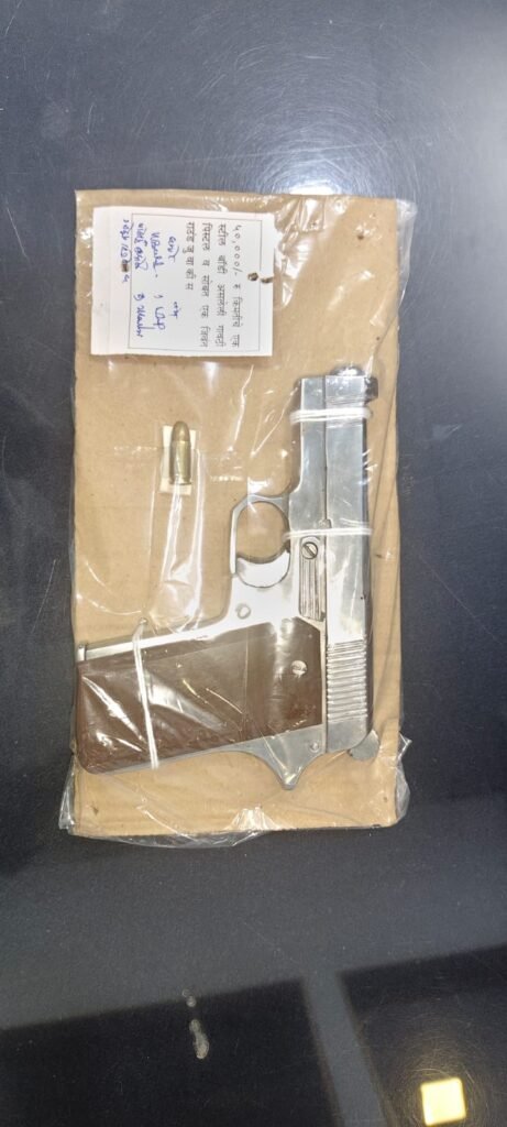 गोपनीय माहितीच्या आधारे पोलीसांनी काल दुपारच्या सुमारास कारवाई केली. आरोपी दत्तात्रय कृष्णात पाटील (रा. वाकी वसाहत, सांगाव, ता. कागल) हा सिल्वर रंगाच्या वोक्सवॅगन पोलो कार (MH-03-BJ-2893) मधून विनापरवाना पिस्तुल घेऊन फिरत असल्याची माहिती मिळाल्यानंतर पोलिसांनी डायमंड हॉटेल परिसरात सापळा रचला. त्याला अडवून तपासणी केली असता कारमध्ये ५० हजार २०० रुपयांची गावठी पिस्तुल आणि एक जिवंत राउंड, तसेच २ लाखांची कार आढळून आली.