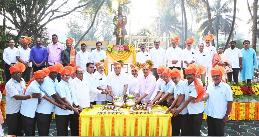 कोल्हापूर : कोल्हापूर जिल्हा सहकारी दूध उत्पादक संघ मर्या. कोल्हापूर (गोकुळ) च्या वतीने गोकुळचे शिल्पकार स्व. आनंदराव ज्ञा.पाटील (चुयेकर) यांच्या १२ व्या पुण्यतिथीनिमित्य प्रतिदिन २० लाख लिटर्स दूध संकलन पूर्तीचा अमृत कलश पूजन कार्यक्रम गोकुळ प्रकल्प गोकुळ शिरगाव येथे संपन्न झाला. हा अमृत कलशाचे पूजन गोकुळ मध्ये कार्यरत असलेले ११ ज्येष्ठ कर्मचारी यांच्या हस्ते करण्यात आले यावेळी महाराष्ट्र राज्याचे वैद्यकीय शिक्षण मंत्री नामदार हसन मुश्रीफ, सार्वजनिक आरोग्य मंत्री कोल्हापूरचे पालकमंत्री नामदार प्रकाश आबिटकर, माजी गृहराज्यमंत्री आमदार सतेज उर्फ बंटी पाटील गोकुळचे चेअरमन नविद मुश्रीफ व सर्व संचालक मंडळ, प्रमुख मान्यवर उपस्थितीत होते. यावेळी स्वर्गीय आनंदराव पाटील चुयेकर यांच्या पूर्णाकृती पुतळ्यास मान्यवरांचा हस्ते पुष्पहार अपर्ण करून अभिवादन करण्यात आले.