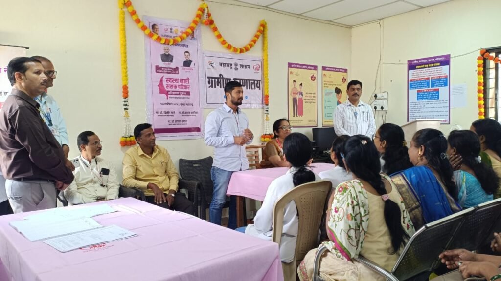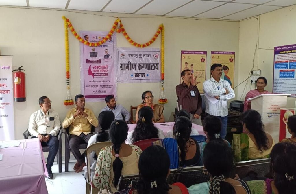 कागल : महीलांचे आरोग्य तपासणी, जनजागृती व पोषण सेवांचा प्रसार करणेसाठी केंद्र शासन व राज्य शासन बांचे मार्गदर्शक सूचनेप्रमाणे ग्रामीण रुग्णालय, कागल व उमेद, तालूका अभियान व्यवस्थापन कक्ष कागल यांचेवतिने संयुक्तपणे स्वस्थ नारी सशक्त परिवार अभियान अतंर्गत आज वि. २०.०९.२०२५ रोजी महीला आरोग्य तपासणी शिबीर आयोजित केले होते वा शिबीरामध्ये विविध मोफत तपासण्या (कॅन्सर स्तन, गर्भाशय मूख, तोंड मधुमेह, प्रयोगशाळा तपासणी, क्ष किरण ईसीजी कुष्ठरोग क्षयरोग, दंत तपासणी, नेत्र तपासणी, हृदयरोग, अॅनिमिया, स्त्रीरोग तंज्ञ यांचे मार्फत विशेष तपासणी, गरोदर माता तपासणी व नियमित आरोग्य तपासणी अश्या व्यापक स्वरुपात वैद्यकिय तपासण्या न औषध उपचार करण्यात आले