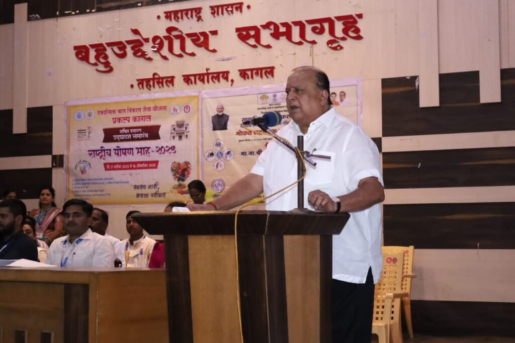 मंत्री हसन मुश्रीफ यांच्या मार्गदर्शनाखाली राज्यात कागल तालुका आघाडीवर आहे . तालुक्यात दहा हजार घरकुल मंजूर झाले . पहिली ते बारावीच्या १७ हजार विद्यार्थ्यांची डोळे तपासणी झाली. तसेच; सर्व शाळांमध्ये सीसीटीव्ही बसविणारा कागल तालुका पहिला आहे. लवकरच दिव्यांग आयडी कार्ड देण्यासाठी कॅम्प आयोजित करणार असल्याचेही त्यांनी सांगितले.