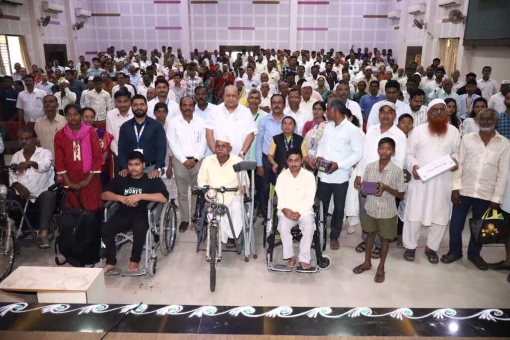 कागल: वैद्यकीय शिक्षण मंत्री हसन मुश्रीफ यांच्या हस्ते दिव्यांग बंधू-भगिनींना मोफत साहित्य व उपकरणांचे वाटप झाले.
