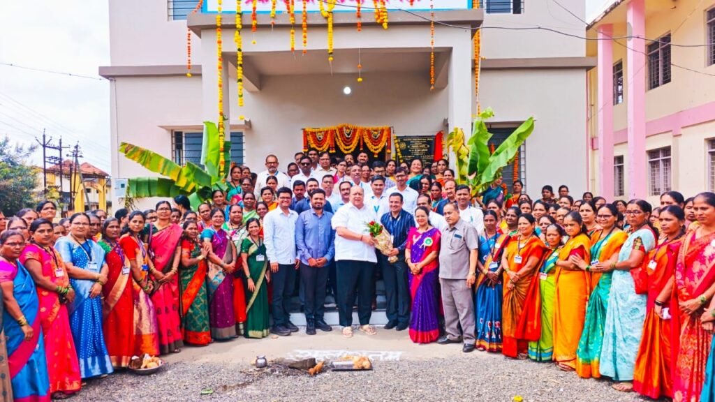 संतोष जोशी यांनी मनोगत व्यक्त केले. नूतन इमारतीच्या उद्घाटनप्रसंगी अंगणवाडी सेविका, मदतनीस या शिदोरी घेऊन उपस्थित होत्या.